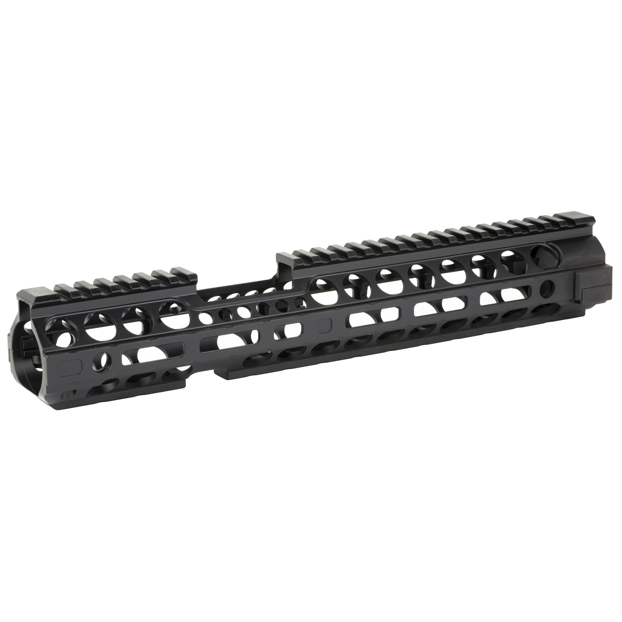 Installs on GI barrel nut (not included with handguard). Extends past the front sight towe to allow additional space for mounting accessories.